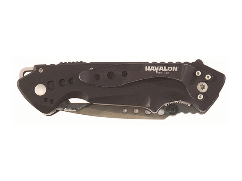 ● 3 1/16” AUS-8 stainless steel blade with cryogenic edge hardening treatment and black Ti hard coating